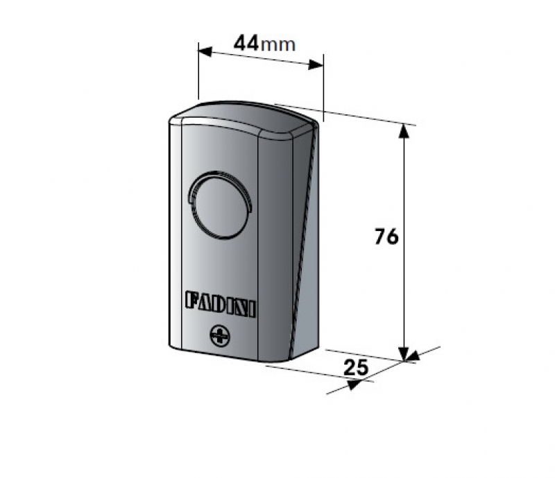 44×25×76 mm. Design splňující požadavek na minimální rozměry a omezené prostory.Instalace na zeď nebo na hliníkový sloupek. Napájecí napětí 24 V ac/dc. Dosah 8 m.