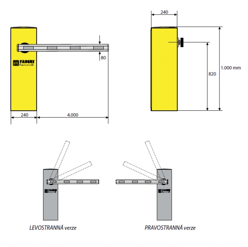 Sortiment FADINI Hydraulické dopravní závory BARRI 88