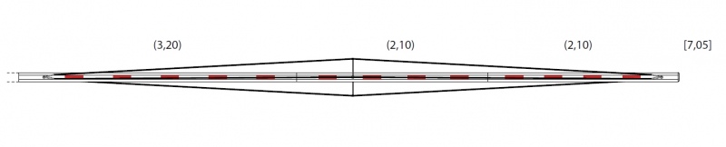 2× spojovací díly + 3 moduly (2,1 + 2,1 + 3,2 m)