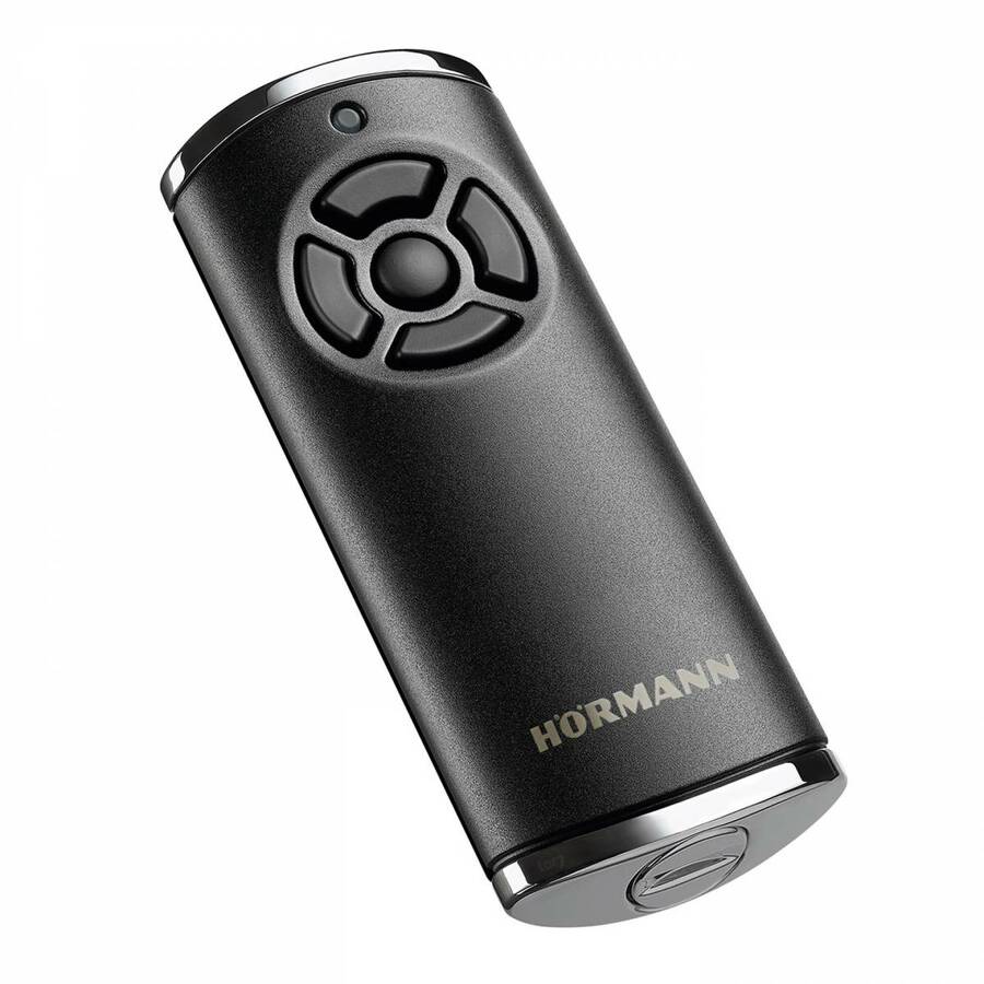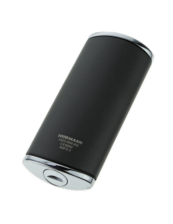 Ruční vysílač Hörmann HS 5 868 MHz BiSecur (HS5-868-BS) v černém matném strukturovaném pouzdře s chromovanými koncovkami a atraktivním designu. Je vhodný pro 868 MHz BiSecur přijímače a zpětně kompatibilní s 868 MHz přijímači s pevným kódem od firmy Hörmann, které se vyráběly do roku 2012. Nový model má matné provední oproti lesklému u starého.