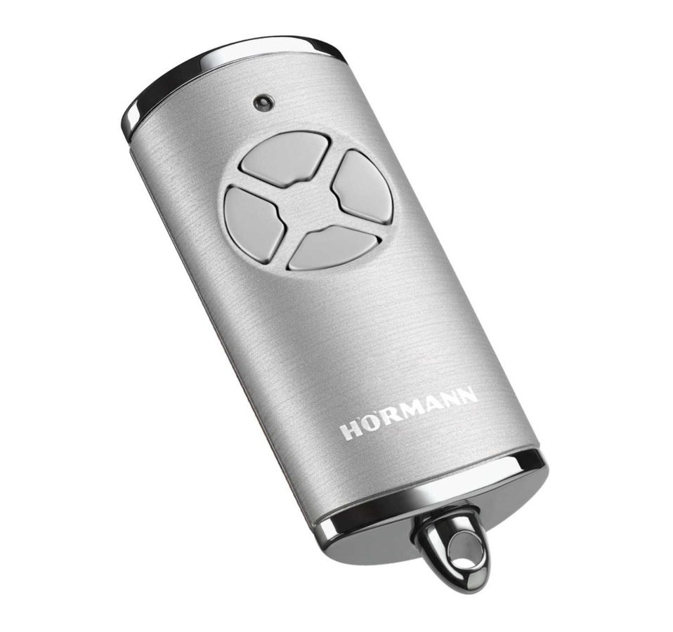 Ruční vysílač Hörmann HSE 4 868 MHz BiSecur (HSE4-868-BS) v barvě lesklá stříbrná, pouzdře s chromovanými krytkami, poutkem pro uchycení na klíčenku a v atraktivním designu. Je vhodný pro 868 MHz BiSecur přijímače a zpětně kompatibilní s 868 MHz přijímači s pevným kódem od firmy Hörmann, které se vyráběly do roku 2012. Nový model má matné provední oproti lesklému u starého.