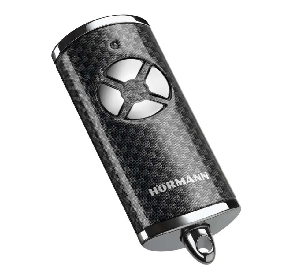 Ruční vysílač Hörmann HSE 4 868 MHz BiSecur (HSE4-868-BS) v černém carbonovém pouzdře s chromovanými krytkami, poutkem pro uchycení na klíčenku a v atraktivním designu. Je vhodný pro 868 MHz BiSecur přijímače a zpětně kompatibilní s 868 MHz přijímači s pevným kódem od firmy Hörmann, které se vyráběly do roku 2012. Nový model má matné provední oproti lesklému u starého.