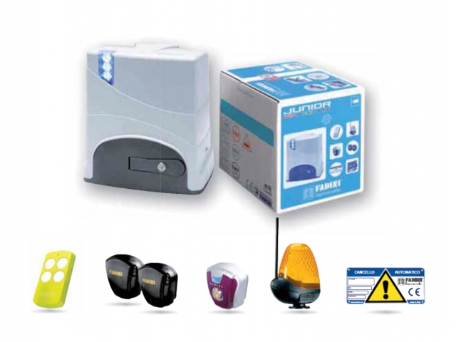 pro posuvné brány se dvěma protilehlými křídly s volbou funkce master/slave pro instalaci druhého pohonu na řídicí jednotce ELPRO 64. Možnost použití záložní baterie v případě výpadku elektrického proudu.