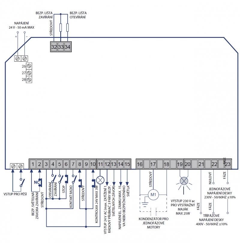 | Výstup fotobuněk/spínače/rádio. přijímače | 24 | [V dc - mA] |