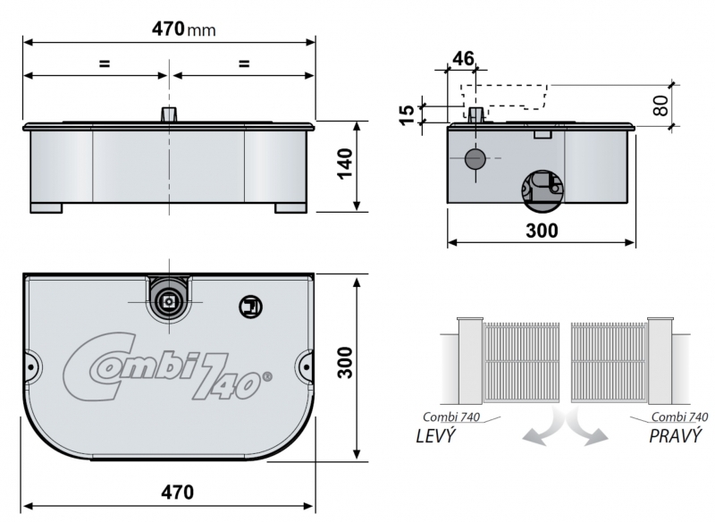 Ochranný kryt pohonu Combi 740 z nerezové oceli AISI 304 s hliníkovým krytem.