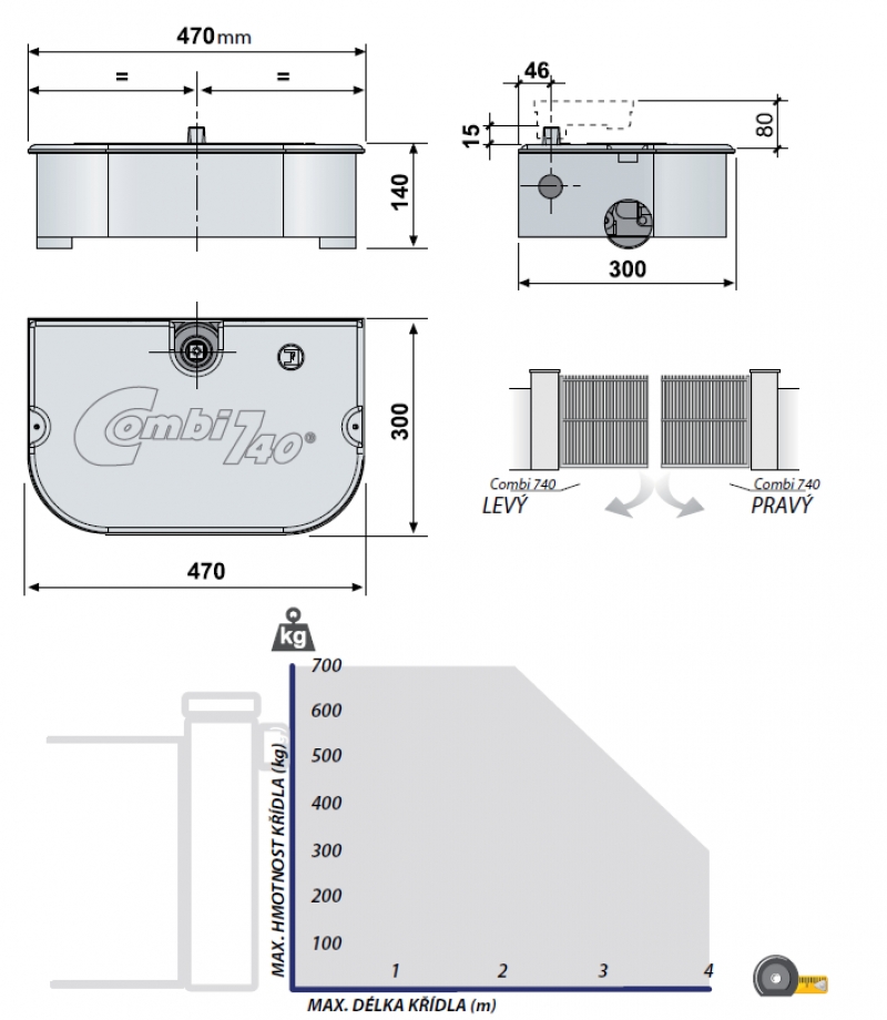 hydraulická jednotka a pohon v jediném ochranném krytu. Nevyžaduje zvláštní údržbu. Pravá a levá verze.