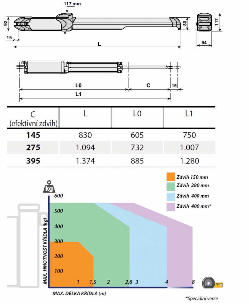 | Tažná síla během otevírání | 0 ÷ 4.000 | [N] |
