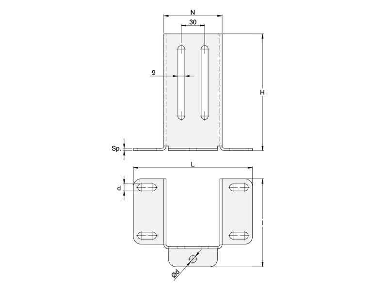 | Kód | H | Počet v balení | d | L | I | N | Sp | |