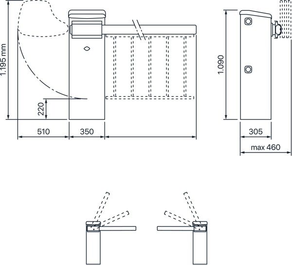 Hydraulická technologie 230 V ac, hydraulická jednotka s integrovaným pohonem. Ideální pro instalace s velmi intenzivním provozem: parkoviště, soukromé vjezdy, přístupové komunikace a průmyslové objekty, obytné zóny. Různé rychlosti, brzdění při otevírání a zavírání ramene.
