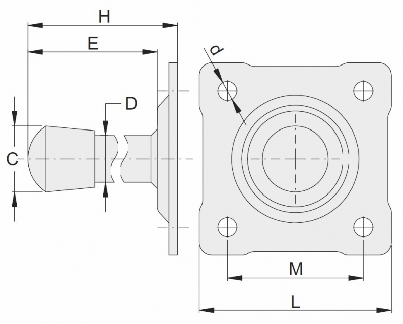 | Kód | D | H | Počet v balení | d | C | E | L | M | |