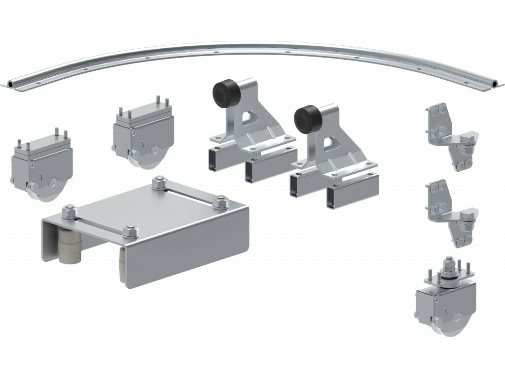 Sada příslušenství z pozinkované oceli pro posuvné rohové brány. 7 kompletních sad navržených pro optimalizaci prostoru a maximální možné otevření. Výběr sady je snadný: v závislosti na celkovém dostupném prostoru lze zvolit co nejvhodnější sadu. Nabízené sady umožňují docílit otevření až 6,0 m, počet křídel a jejich rozměry jsou pevně dané. Prostor zóny zakřivení je redukován na minimum, a proto je 80 % dostupného prostoru využito pro otevření.