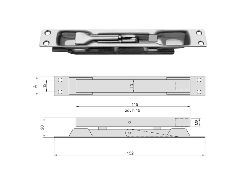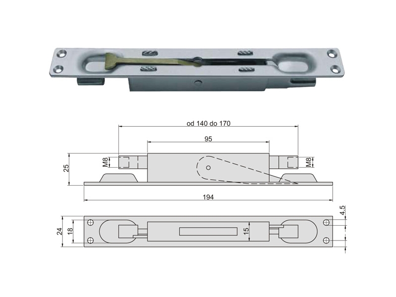 Dvousměrná zapuštěná zástrčka dveřního křídla, Zn