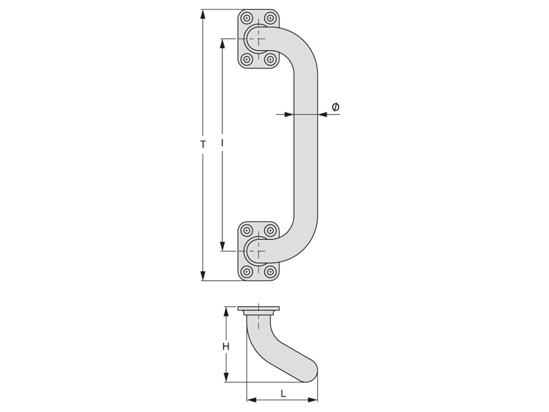 Komponenty FAC Komponenty pro zavěšená vrata Madla K přišroubování