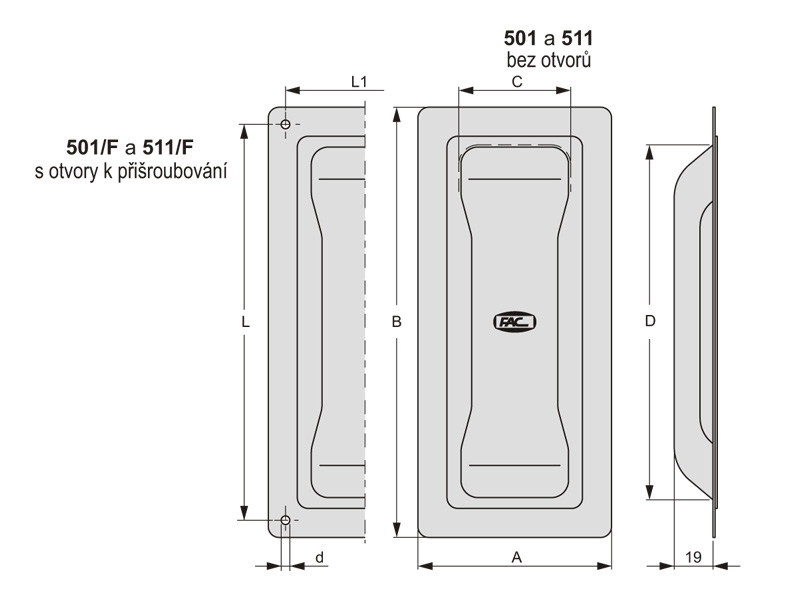 Komponenty FAC Komponenty pro zavěšená vrata Madla Zapuštěné