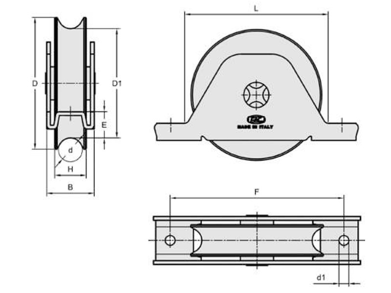 | Kód | D | D1 | B | H | F | Hmotnost | Počet ložisek | Počet v balení | d | E | L | d1 | |